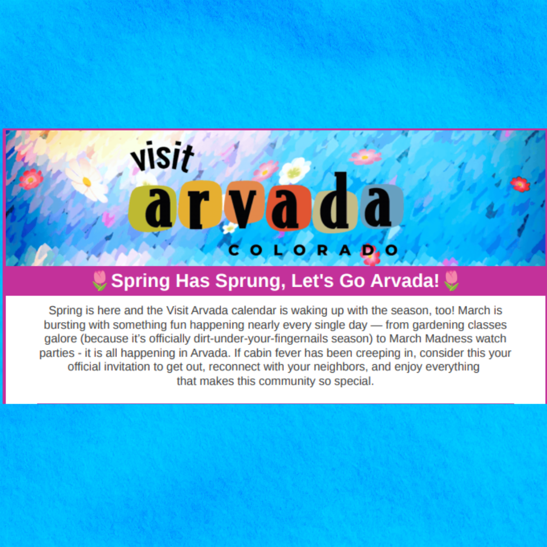 Spring is here and the Visit Arvada calendar is waking up with the season, too! March is bursting with something fun happening nearly every single day — from gardening classes galore (because it’s officially dirt-under-your-fingernails season) to March Madness watch parties - it is all happening in Arvada