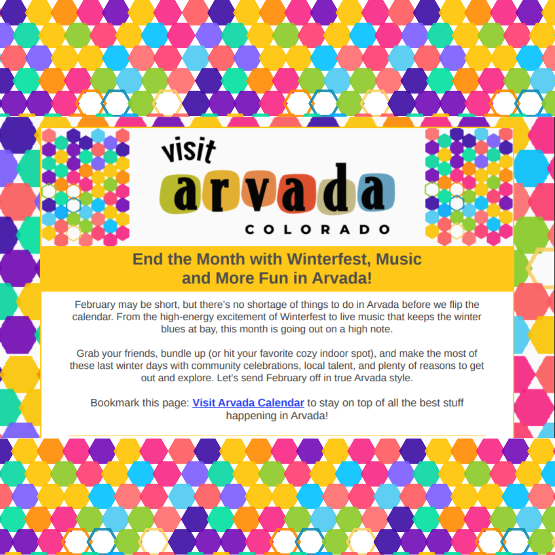 February may be short, but there’s no shortage of things to do in Arvada before we flip the calendar. From the high-energy excitement of Winterfest to live music that keeps the winter blues at bay, this month is going out on a high note.