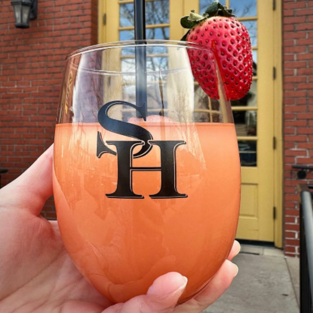 Over at School House Kitchen and Libations, things get a little more playful. Their frosé is exactly what you want when it’s warm—rosé, strawberry, peach, white grape, all blended into a perfect frozen situation. The strawberry hibiscus margarita is right there with it if you’re going all in. Not drinking? A strawberry-lemonade style mocktail or a hibiscus soda still hits the same springy notes without the alcohol.